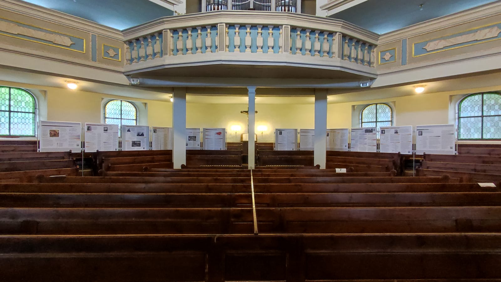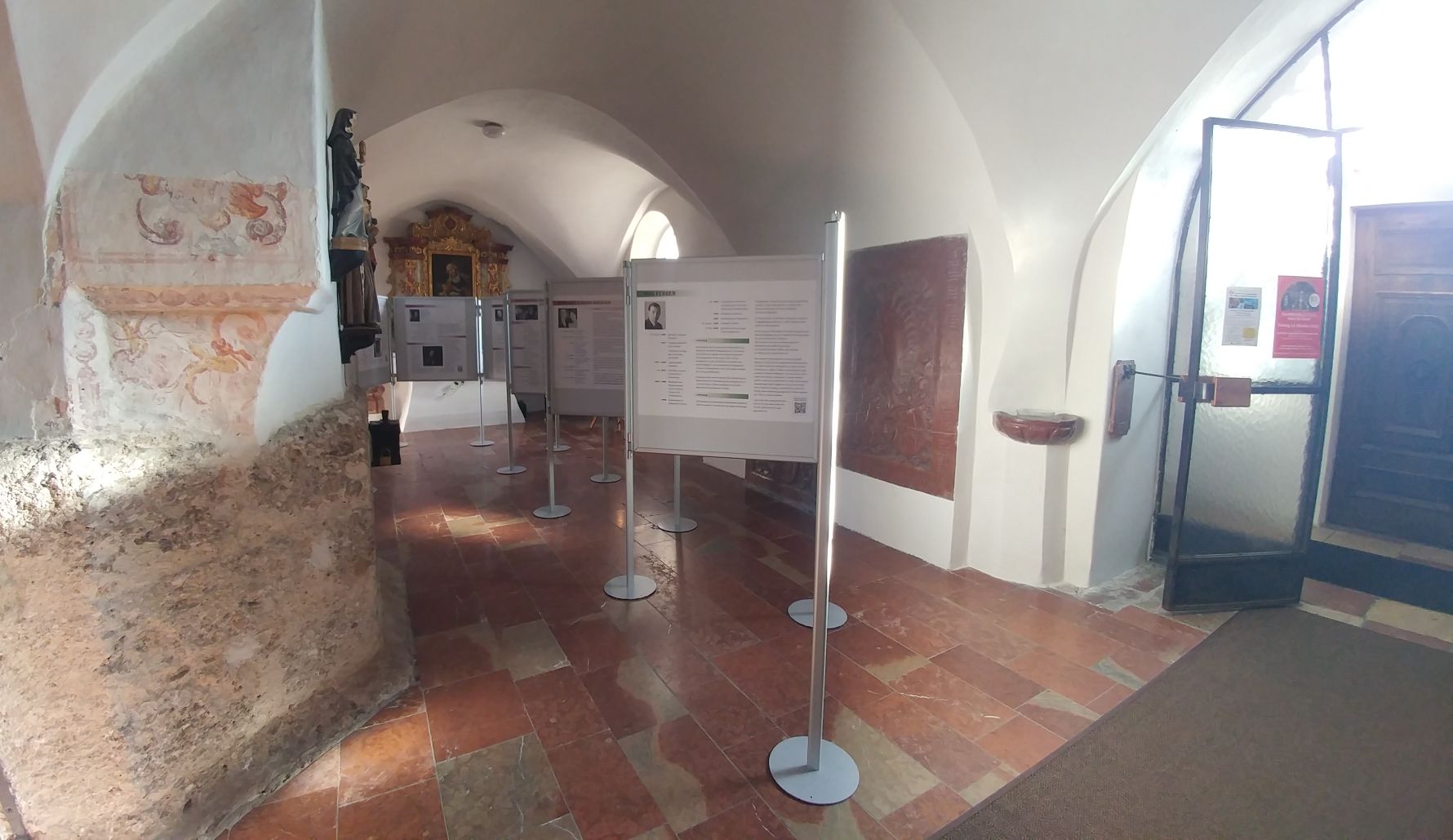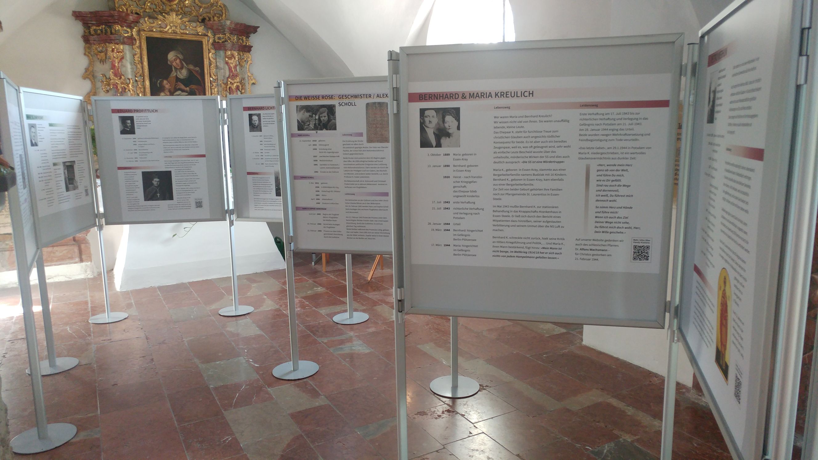Unsere erste Stellwand war mit Stangen aus Edelstahl und Tafeln mit Stahlrahmen. Das war zu schwer für häufige Transporte und ist inzwischen durch leichtere Stellwände ersetzt.